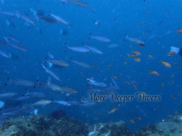 多様な種類の魚達にくわえて、群れがおおいっ!