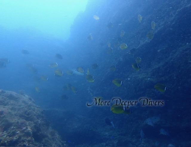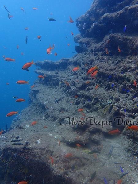 キビナゴ群れ ニザダイ群れ キンギョハナダイ ウツボ クマノミ スズメダイ イセエビ ソラスズメダイ ヘラヤガラ イタチウオ イロブダイ(大) コロダイ(大) ハマフエフキ ホウライヒメジ チョウチョウウオ イサキ群れ シマウミスズメ オニカサゴ etc...